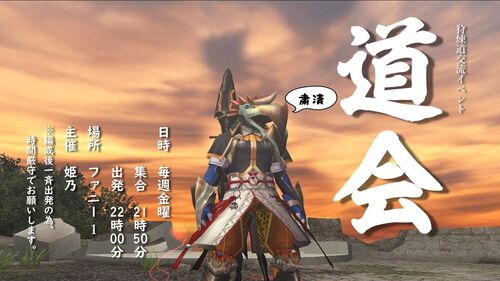 毎週ご恒例!皆で楽しむ交流イベント「道会」が開催されます。 当イベントは「狩煉道」を気軽に楽しめる交流イベントであり 武器種も自由!毎週様々な方が足を運ばれています。 開催日時:8/2(金)ファニー1 ・21:50 :集合 ・準備出来次第:出発